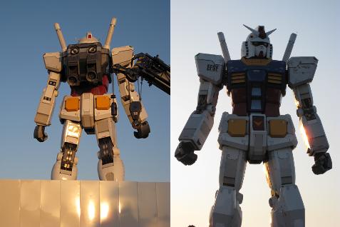 夏にニュースで見ていた「等身大ガンダム」が泊まっているホテルの近くにある、というので見てきました~公開期間は終わってるから、ホテルの方曰く・・・「もしかしたら、取り壊しにかかっているので顔がないかもしれませんが・・」との事でした着いた・・と思ったら、裏側かいっくるっと表側に周りました 逆光ですが解体工事をし始めた所のようで、まだ、ちゃんと顔は残ってました宿泊していた「ホテル日航東京」とガンダム(笑)正直、私は興味がなかったので、ガンダムに群がる人々の方が見てて面白かったです ^m^超オタクな青年発見脚立をめいっぱい上に上げてます・・・ それでガンダムのどこがどういう風に撮れているのか彼はこの行為を何度も繰り返してましたよ