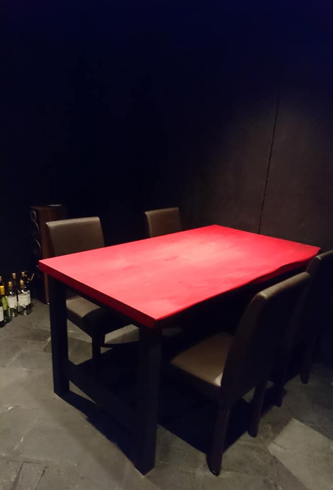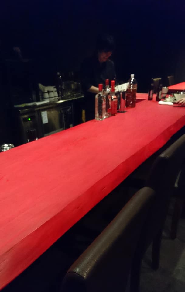 黒の内装に赤のカウンターがラグジュアリーな雰囲気でBARのよう。