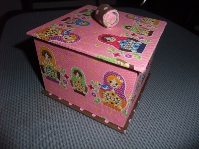 designed by *ま~ぶる*3日くらいから風邪気味で、まずいなぁって思ってたら本格的に…そのせいか、昨年クリスマス頃から風邪が続いていた息子は元気になりましたそろそろ仕事(ハンドメイド)も再開しなくちゃという頃になって、身体はだるいし、下を向いてると鼻水が流れてくるし…ほとんど手が進まなくてチンタラチンタラと…、今日やっと一つだけ作品ができました。今年はじめての作品は去年もたくさん作ったキューブボックスです茶系のラベル柄×ドット。いつもより大人っぽい雰囲気で開けたところ。開けた時の印象を暗くしたくなくて、ちょっと明るめにオフホワイト×茶のドットの方を多めに使いました。更に、引き出しを引いたところ…こちらも、トランク同様、昨年はたくさんの方にお買い上げ頂きました。自分用に一つ欲しいなぁと思いつつ、後回しにさせたまま年を越しちゃったので、今年こそはもうひとつ、同じフォルム・デザイン作品の中、昨年最後に作ったのを記録として載せておきます。こちらはうんとキュートな大柄マトちゃんで開いたところは、こんな感じです。マーブルチョコのような茶色地のカラフルドットは、ずーっと使ってみたかったお気に入りの生地です。このマトちゃん、パネル柄なのですが、柄方向が一方に定まっていなくて、バラバラなんです。おまけに、プリントされているのはマトちゃんだけではなく、メインには淋しいかなと思える柄もあったりで、どこをカットしようと柄合わせに悪戦苦闘の末の完成でした出来たてホヤホヤで、写真も撮らずに納品に持ち込み、後で、お買い上げ頂いたarrirriさんに写真を頂きましたarrirriさん、お買い上げ&写真ありがとうございました参考までに~、マトちゃん柄の全体の雰囲気はこんな感じだよ入園入学におすすめ!【シーチング】ラブリーマトリョーシカのパネル柄(60cm単位) レース 花 水玉 ドット 入園入学 鼻をかみ過ぎて、鼻の下が赤いしカサカサしてきました。みなさんも、風邪に気をつけてくださいね