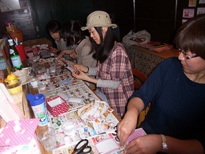designed by *ま~ぶる*何だか忙しいような…ん~、忙しいからと理由づけをして結局はサボってるだけのような…ブログから離れてる間のそんな日常にも、書き留めたいことがたくさんあるんだけど…そして、久しぶりに日記をアップしようと夜中にパソ前に座ってみたけど…、昨日は腰痛と睡魔に負け…止む無く断念それを踏まえて~、眠気が無い午後の時間にアップしちゃいます まずは…、つい最近の出来事から、書いていこうかな。先週末のこと。カルトナージュの体験会を行いました。私のブログでも何度かご登場頂いているarrirriさんの紹介でご縁を作って頂き、5名の生徒さんをお迎えしての体験会となりました。会場は「mayu 繭」さんという昼間はランチ、夜はアルコールも頂けちゃうというお食事どころで、今回の体験会のお声掛けをして下さったオーナーさんのお店です参加して下さった生徒さん5名のうち、arrirriさんとオーナーさん(繭さん)を除く3名が当日「初めまして~」のお方です。その中でカルトナージュの体験したことがあるのはarrirriさんだけ。講習会の様子はこんな感じです。今回は、3種類の中から、ご希望を伺って…、体験して頂きました。なので、同じ作品を作られる方同士で並んで頂きました。皆さん、黙々と手を動かされ、少しずつ形が出来上がってきて、嬉しそうにされてましたパーツを組み立て箱の形が見えて来たとき、また、箱に最初の布が貼られ、箱の厚紙部分が隠れて出来上がりのイメージがすこーしばかり見えて来たとき、長くカルトナージュを楽しんでいても、私も、いつも、ここでテンションが上がります同じものを作り始めても、個人差はどうしても出てしまうもの。手の進み具合の違いもありますが、5名の生徒さんへの対応にあたふたし、私の説明待ちで手を止めざるを得ないなど……理由は様々ですそんなとき、先に工程が終わっている生徒さんが、私の説明待ちをしている生徒さんにレクチャーして下さっていました写真1枚目の奥に写ってるのがその様子ですね。その様子(雰囲気)が微笑ましくてとっても嬉しかったですありがとうございました写真2枚目では、スケジュール帳を作られているところです。お店の照明の関係上、ちょっと暗いところで…慣れた手つきで作っていらっしゃいました予定(3時間)を超過してしまいましたが、無事、みなさんの素敵な作品が出来上がりましたちょっと初心者の方には無謀?と思しきメニューでしたが、「初めて」とは思えない完成品ですよ~。それぞれ、個性があって、同じフォルムでも、違うものに見えますねキャンディボックス 2作。ポケットティッシュ用ボックス 2作。スケジュール帳 1作。実は、ポケットティッシュ用ボックスは、いつも私が作っているものより工程を少なくできるよう改良しました。背中側のデザインなども変えるなど、初心者さんにも出来ると信じてチャレンジして頂きました。見事に完成です 蓋を開けたところも、一枚載せておきますね。mayuさんが作られた箱の中に…、チェブラちゃんがみなさん、とても熱心に、そしてとても楽しそうに体験されていました。私が体験会をするのはまず何より「カルトナージュの楽しさを知ってもらいたい」なので、今回もその目的は果たせたようで嬉しいです作業中の雰囲気も、黙々とした中にも和やかな空気が流れていて、楽しい時間はあっと言う間…、気づけば18時(15時スタートです)そこから、バタバタと焦り始めました課題を3種に分けたので、多少のバタバタは予想していましたが、この3時間の間、一度も時計を見ることなく…本当にあっと言う間でした。ご参加くださった皆さん、お疲れさまでした。どうもありがとうございましたまた、お声を掛けて頂き、こういう場を設けて下さったmayuさん、そしてそして、このご縁を結んで下さったarrirriさん、本当にどうもありがとうございました。私にとって、楽しく充実した数時間でした arrirriさんとは、翌日もご一緒させて頂きました。たくさんのおしゃべりやドライブ、雑貨やさん巡りなどなど、本当に楽しいことだらけの2日間でしたarrirriさん、何から何までお世話になりました。ありがと~~~また遊ぼ