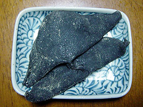壱千弐百年・・・その古の時代より人間どもの念と妖しの物達の気が渦巻いてきた平安の都・・・我はその深奥より遣わされた物・・・闇と一つになり続ける存在・・・その名も・・・ブラックおたべだぁ~って、わ~!!ブラウザをとじないで!あまりの黒さに思わず想像してしまったのである。名前の通り、京都の銘菓“おたべ”の黒バージョンでありますな。ニッキの風味がほんのり広がるノーマルバージョンはいつ食べても美味しいし、小学生の頃修学旅行で商売上手な新京極のオバチャンにすっかりやられて結構な数買った覚えもありますぜ。で、この黒おたべの味は・・・おお!ゴマが効いておりますな!!ノーマルとはまた別の味でいけてます♪色が黒いのは黒ゴマの色なのですかね。普段は冷たいお茶しか飲まないのだけれど、こういうお菓子は暖かいお茶でズズズ~ッと♪個人的にはほうじ茶のが合うかもと思ったけれど。ふむ、日本中のまだ見ぬ銘菓、アレコレと味わってみたくなったのでありました。