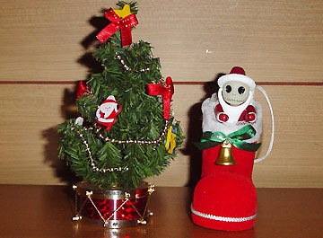今日はクリスマス・イヴなわけですが、家族の年賀状まで作らなくてはいけないワシとしては特に何もせず、平常運転。と言うかこの時期は家でも仕事のようなコトをしとりますな、はぁ・・・。それでもアレコレと用事を済ませるために、外へ出ると、近所から遠いトコまで、気合いの入ったイルミネーションが鮮やかな各ご家庭。おと~さんお疲れ様ってトコですな。で、我が家も平常運転とは言っても軽~くクリスマス仕様に。ケンタ鳥でチキンを買って来て食べて、ケーキも味わい、ツリーを飾る程度だけれど。そんな今年はツリーに新たなる仲間が登場。そう『ナイトメアー・ビフォア・クリスマス』のジャック君ですな。サントラのオマケでついて来たので、せっかくのサンタスタイルというコトで一仕事してもらっております♪10cmにも満たない小さなツリーとカボチャ大王のセットだけれど、な~んか和みますな。鮮やかなイルミネーションが無くても、充分クリスマスでございます。とりあえず、サンタさんにはプレゼントよりも、年末ジャンボの当選をお願いしているので、何卒、何卒ぉぉぉぉ!!と言うか、どこが平常営業なのだろう。思い切りクリスマスを満喫しているような気がする・・・。ま、い~か♪