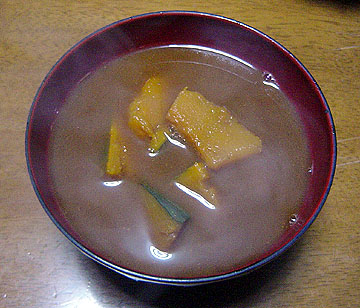 異様なまでの暖かさに、イマイチ実感は無いけれどクリスマス間近。そして明日は天皇誕生日。何かと祝い事ムードなこの週末だけれど、今日も暦の上だは大事な日でありますぜ。そう、冬至でございます。そもそも冬至とは何ぞやと思って調べてみたら、古代では冬至が1年の始まりだったとか。ほえ~、そいつは全くしらなんだ。自分の中では1年を通して、昼間が一番短い日程度にしか知識は無かったし・・・。(詳細はコチラへ♪)ま、そんなウンチクはともかくとして、節分で軽~く豆を撒いてみたり、端午の節句に菖蒲湯にしたりと何かと古来からの風習を楽しんでいる我が家、勿論冬至にもやっちゃいます。まずはコレ、南瓜ですな。朝から煮物が出るかな~と思っていたら、味噌汁で登場となっておりました。それでも味噌の味と南瓜の甘味がバッチリ合わさって、美味しいのでございます。そしてお次は勿論コレ、柚子湯ですな!入浴剤の香りの定番に柚子があるけれど、ホンモノを湯船に浮かべるのはまた別格。入浴剤はあくまで入浴剤なんだな~と思えるほどの良い香りがいたします♪さあ、これで冬至のイベントも恙無く終えて、風邪も引かないコトでしょう!!(などと言っていると、豪快に風邪を引いたりするモンですが・・・)ところで、冬至粥なる食べ物もあるそうだけれど、どんなモノなんだろう・・・?