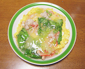 で、昨日の夕食のメインメニューがこの『ふわふわ玉子の蟹あんかけ』。