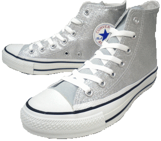 私が持ってる以外にも、コンバースのシルバー色の限定が出てるみたいで(調べた結果『ALL STAR METALLIC-PYTHON(オールスター メタリックパイソン)HI』というモノらしいです)そちらの方はレザーですが、生地自体が既にシルバーの色で、質がツルツルなのに対して・・・私が持ってる←コチラは、コンズ定番の布生地にシルバーを吹き付けてあるので、シルバーの色がキラキラと剥げ落ちてきます。(自分が持ってるからだろうけど)レザーがシルバー色でツルッとしているタイプよりも、布生地にシルバーが吹き付けてあって色落ちがある方が・・・何となく味が出てて格好イイような気がしませんか? (いかがでしょう?)