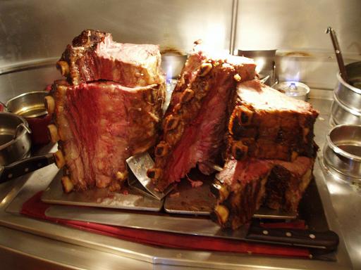 酩酊流稽古で行ったLawry's The Prime Rib 東京。その迫力のお肉をどうぞ。 オールステンレスのドームカバー付のワゴンに入ってるローストビーフ。切り分ける前のお肉です。専門のスタッフが注文に従って切り分けれてくれます。お肉を切り分けるサービスで、賞を取ったという、メダルを下げたスタッフに恭しくお肉を切り分けてもらいました。お肉の大きさ、意外にシンプルでわかりやすいメニュー、お店の広さ、インテリア、スタッフのアメリカ人比率、どれをとってもアメリカを感じさせるお店でした。6月末のロサンゼルス&サンフランシスコ行きが危うくなってきてるので、ダメだったらここで残念会をしちゃいそうです。それより前に自分でもお肉を焼いてみます!!金属製のヘラも使えるって言うところがいいですね♪