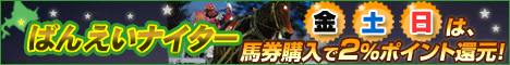 5月9日より、平成20年度のばんえい十勝ナイター開催がスタートしました。ナイター期間中はぜひ、帯広競馬場で最高の雰囲気をお楽しみ下さい。 また、楽天競馬では、6月29日までの金、土、日曜日開催において、馬券購入額に対して2%のポイント還元を実施いたしております。ぜひ、楽天競馬からばんえい十勝にご参加いただきますよう、お願い申し上げます。