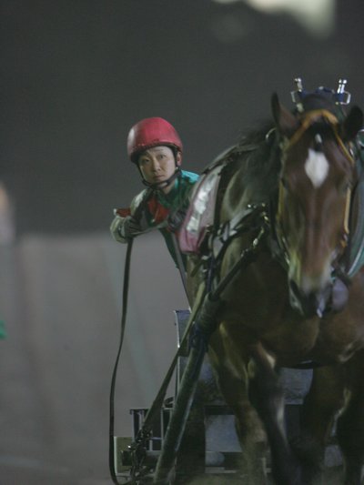 担当馬その2です。暗くて私の画像の悪い携帯では上手く撮れませんでしたが、今日の最終レース。グレイトウェイブ号(私が呼ぶ時はヘッポコ)1着。まーさーかー!! 前走で勝った時は順番的にありかな?ってな位だったけど、2連勝するような器では・・・ゴール際で微妙にかわしたかな?と思った時にはびっくりして何故か妙に笑えました。このまえ、この子で来期用のCM撮影(模擬レース)に参加した時はかなり恥ずかしい思いをさせられたんですよ。1障害を皆揃って越えなきゃいけないのに1頭だけ抜けて遅く、2障害もいっせいに越えなきゃならないのにまた遅れ・・・とにかくマイペースと言うか何と言うか。そんなこいつがこんなに頑張るとは予想してなかったので相当びっくりしました。来期からも一緒に頑張るかぁ~