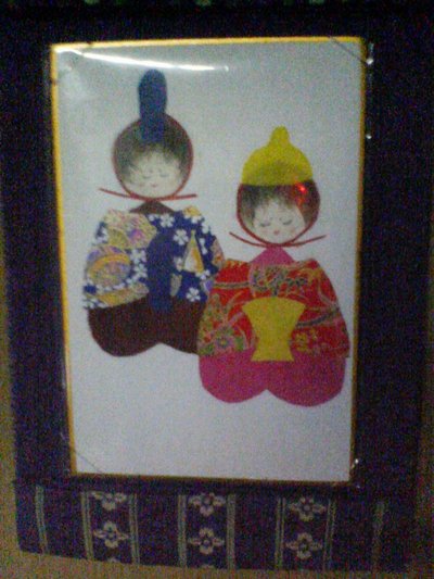 MerryX'mas!ってかまだ早いし、私には縁のない話なんだけど。この写メ、家の母からの贈り物なんです。前にも載せたことがあるんだけど商売をやめてからの趣味の一つがちぎり絵なんです。たいして意味はないけどこれを飾って数年目のシングルX'masをむかえたいと思います・・・ 今年は何処に乱入して過ごそうかな~