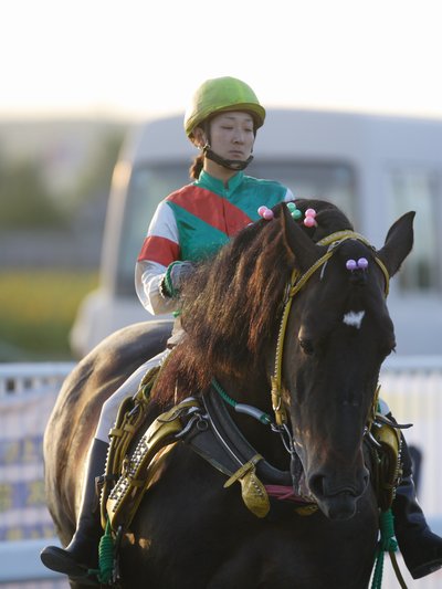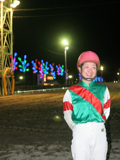 今日は来年度用の騎手名鑑に載せるという写真をレース前に撮りました。最近ちょっと疲れ気味で休憩時間を重視していたので実はもう1開催半ほどすっぴんで乗っていたんです。まぁパドックで見ているお客さんでも気付いてくれているかどうかわかりませんが・・・ んで久々に今日ちゃんと、と言うか真面目(?)に軽く塗って行ったんです。いやぁ正解!!でした。レースの前に広報の人に呼ばれて2階に上がりいざ撮影。5枚撮りましたが何が(お題)初かって2枚は無表情で3枚は笑顔でとの事、そして何よりヘルメットなしでって言われたのがビックリ!? 皆さんにはそれって普通そうに思えるかもしれないけど快挙ですよこれは。出来上がりは見てないけど皆さんまともに顔見てガッカリしないで下さいね。・・・今やっぱりヘルメットかぶって撮っていた時の方が少しは誤魔化せてたのかも~・・・と思っている私であります~