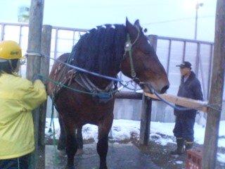 今日の帯広、天気予報ズバリ的中! そう何処よりも大雪だったらしいです。まぁお陰で昼まで休めたんだけどね。昨日は能試(テスト)の馬の走路開放、そしていよいよ明日は今年度初の能力試験となりました。明日は少しは天気良くなるといいんだけど。桜前線は津軽海峡手前でストップ、北海道にはまだ春は来ませんね~ まぁ私も春とは縁遠い人間ですけどね… あっサブイ