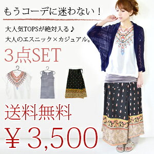 ●送料無料●もうコーデに迷わない!大人のエスニック×カジュアルスタイルが簡単に手に入る大人カジュアル3点SET!