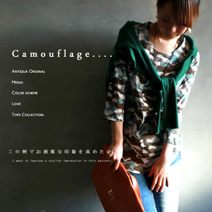 antiquaオリジナル!『今、私が選ぶ旬な厳選柄。』4月24日10時&20時~の2回再販!カモフラ柄の奥深い魅力たっぷりな、迷彩柄トップス##