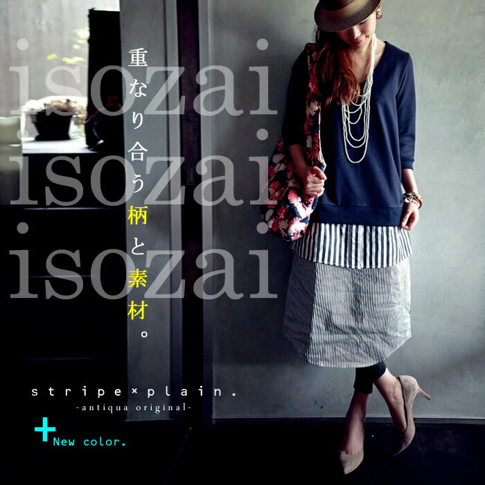 新色登場!antiqua一押し!『これ一枚で旬なリラックススタイルが完成する。』異素材ドッキングレイヤードワンピース