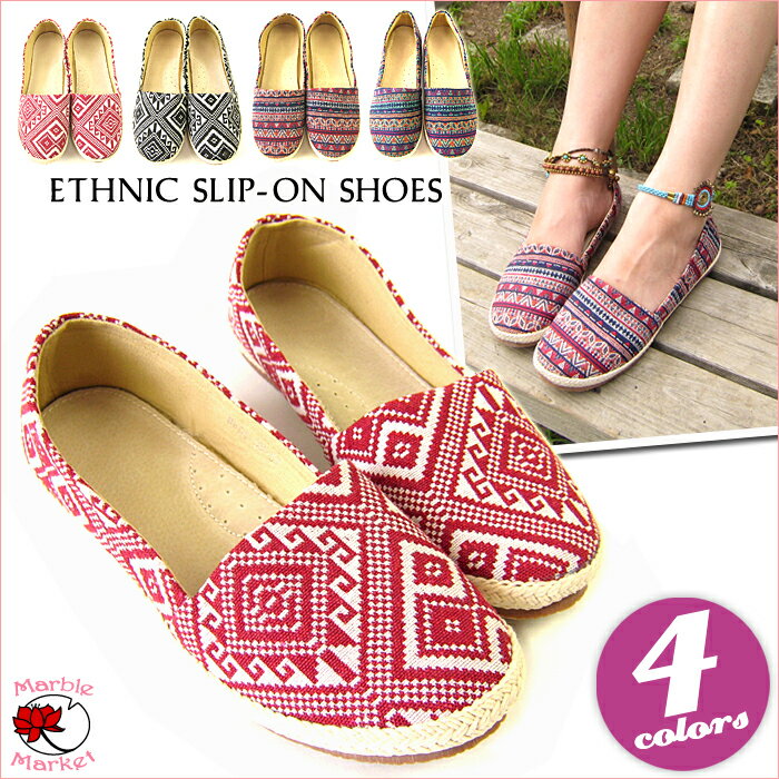 エスニック柄 ぺたんこスリッポン≪メール便不可≫【エスニック ファッション アジアン 靴 new-marble】【楽ギフ_包装】【RCP】【★】