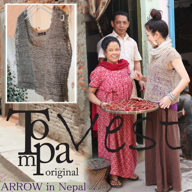 Sale【訳あり特価!】【Tompa Original】手編みアローの万能ベスト!tompa/東巴/とんぱ/いらくさ/ヘンプ/麻