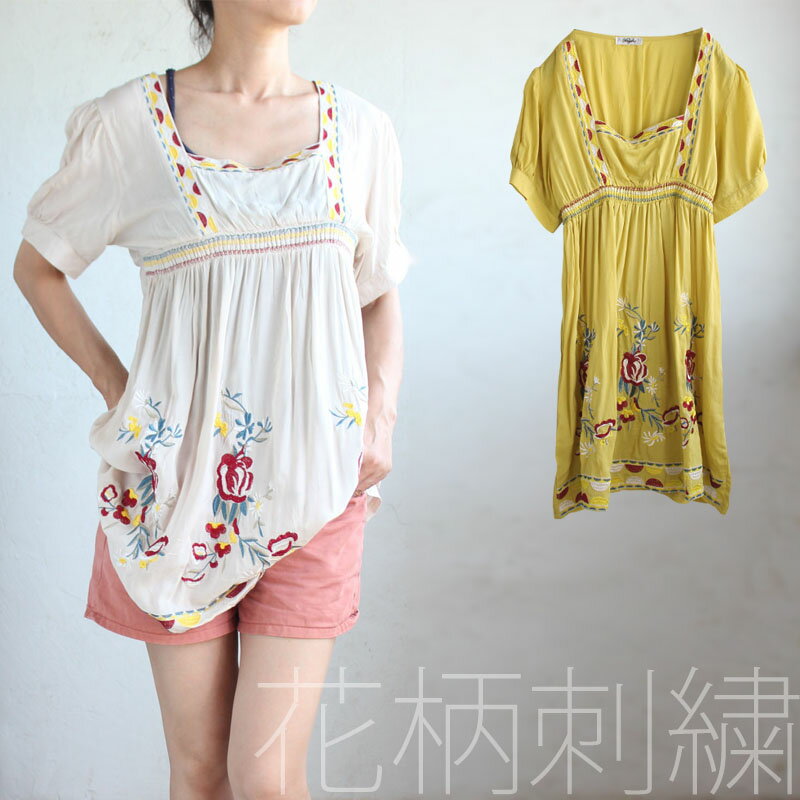 フラワー刺繍のロングチュニックアジアン/エスニック/アジアンファッション /ヒッピー/フォークロア