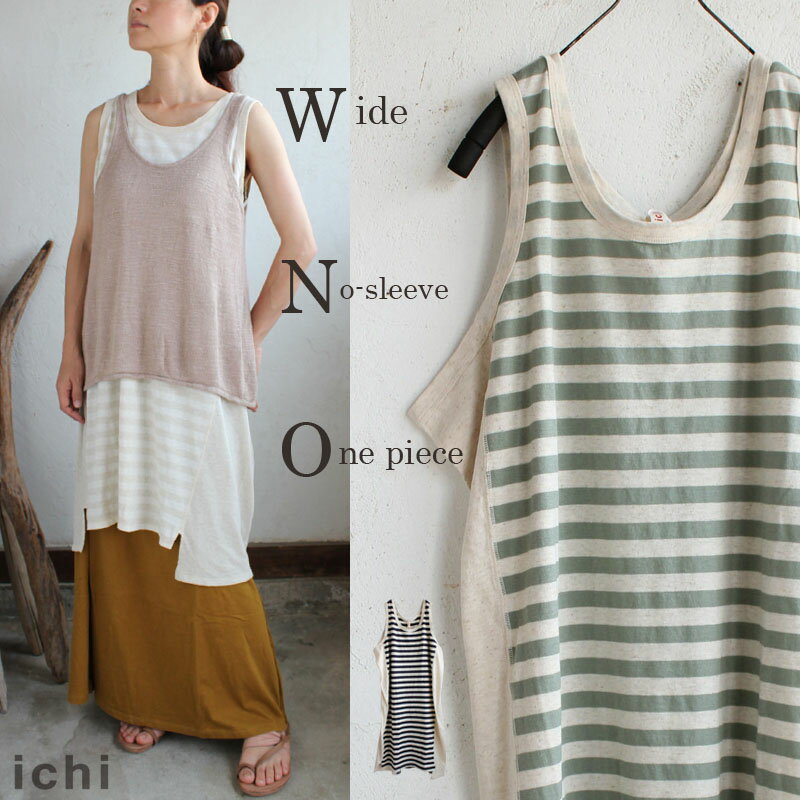 【ichi】切り替えワイドノースリーブワンピース* ICHI イチ/ナチュラル/ワンピース/Cotton/Linen