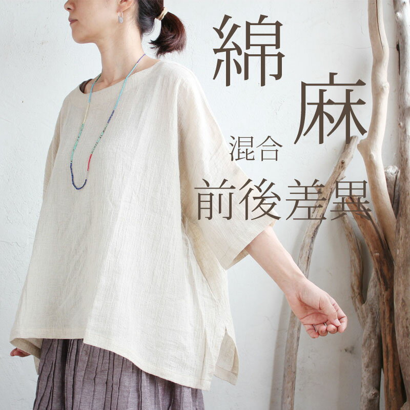 綿麻リラックスナチュラルプルオーバー!フェアトレード/ナチュラル シャツ/ECO/エコ ブラウス