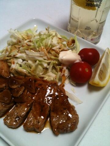 仕事後、勉強会があったので、休憩時間に一本満足バーのシリアルホワイトをパクリ。糖質21gだし、美味しいし、満足感あるし、残業の時(今日は残業じゃないけど)の小腹がすいた時にちょうどいいです!おすすめ!夜ご飯は、トンテキ、キャベツの千切り、ハイボールです。豚のロース肉が安売りしてたので3枚入り2パック買っちゃいました^^使用レシピはこちら ↓ ジューシーやわらかトンテキ☆ by まゆちょこりんみりん → ラカントS に置き換えました。焼き方はこちらを参考にしてね☆ ↓ 元ステーキ職人直伝!ポークソテーの焼き方 by しるびー1978■糖質制限93日目■今朝の体重:47.5kg(前日比+200g)今日の食事朝:ヨーグルト100g(糖質5g) 野菜ジュース150g(糖質10g) チーズ1個お弁当 サーモマグの具沢山ポトフ(ソーセージ2本、ブロッコリー2房、人参2cm、プチトマト2個、コーン大さじ1杯) ゆで卵 6Pチーズ1個間食 一本満足バーのシリアルホワイト(糖質21g)夜:トンテキ キャベツの千切り ハイボール