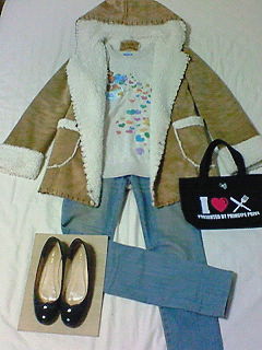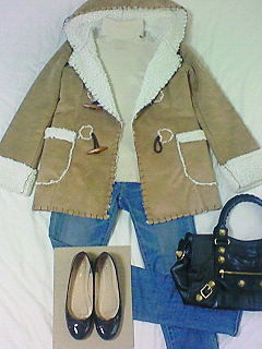 11月10日(月)~の一週間のコーデです。急に寒くなったので、Clearのフェイクムートンで初コーデしちゃいました○月×日フェイクムートンコート、とっても軽くて、一枚であったかなので、中は薄手のタートルリブニット一枚で十分でしたョフェイクムートンコート:Clearリブタートルネックセーター:UNIQLOスキニージーンズ:UNIQLOエディターバック:GINA COLLECTIONブラック エナメル バレエシューズ:リュクス○月×日インをTシャツにしたら首元が寒かったですマフラーをすれば全然いけそうフェイクムートンコート:ClearロングTシャツワンピース:ラズレナデニムショートパンツ:ジャッコランタンエディターバック:GINA COLLECTIONレースアップブーツ:BUCCIA○月×日クマ耳付きもこもこパーカ:リアル店舗にてボーダーTシャツ:UNIQLO薄色スキニーデニム:g.u.キルティングトート:MARC JACOBSブラック エナメル バレエシューズ:リュクス○月×日もこもこパーカは裏地付きでこれ一枚でコート代わりにもいけそうなくらいあったか。足元はミニで寒かったので、GAPのレギンスを合わせました。くま耳付きもこもこパーカ:リアル店舗にて星柄ヒラミニSK:ELLE ADOLEエディターバック:GINA COLLECTIONムートンブーツ:UGG○月×日+黒の80デニールタイツをはきました。ケーブルニットキャップー:UNIQLOソフトラムVネックカーディガン:UNIQLOシャツワンピース:UNIQLOエコバック:PRINCIPEレースアップブーツ:BUCCIA