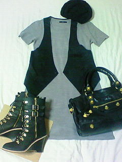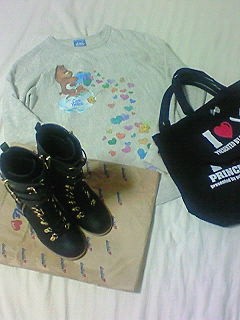 こんばんは。最近買った服達です。ケアベアのトレーナーはソニプラで一目ぼれ。プリンチぺのエコバックはおしゃれブローガーさん達が続々とゲットしていたのでまねっこゲット。10/4の日記にレースアップブーツが欲しいと書きましたが、悩みに悩んで、BUCCIA・レースアップブーツを買っちゃいました。黒×ゴールド金具のタイプです。サイズはL(23.5~24cm)つま先がコロンとまあるいので、ハードだけどハードすぎない。ウェッジソール8.5cm最近、ぺたんこ靴ばかりだったのでどうかな?と思ったけど、安定感があって高めヒールでも履きやすかったです。レースアップにダブルベルトで着脱はどうなの?!内側のファスナーで楽々です。外側のファスナーは飾りでした。おニュウの服でさっそくコーデしてみました。ベレー帽:H&Mトレーナー:CareBearsマニッシュベスト:Triple R 【トリプルアール】星柄ヒラミニSK:ELLE ADOLEレースアップブーツ:BUCCIAちょいロック系だけどハードになりすぎないようにしてみました