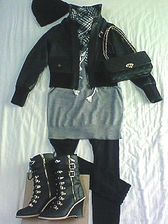 2008年12月~2009年3月までの7コーデまとめ☆コーデ品☆アウターラムレザー リブジャケット ブラック:JTP TRADINGメンズニットカーディガン:UNQLOダルメシアンクラッシーコート:グラマラスガーデンインナーネルチェックシャツ:UNQLOボーダーT:UNQLOSロゴロングTシャツ:ELLE ADOLEワンピースブロックチェックワンピース:リアル店舗フード付きニットワンピース:UNQLOボトムスデニムショートパンツ:ジャッコランタン星柄ヒラミニSK:ELLE ADOLEスキニーデニム:g.uシューズムートンブーツ:UGGレースアップブーツ:BUCCIAブラック エナメル バレエシューズ:リュクスミネトンカ ウッドストック:MINNETONKAバックキルティングチェーンバック:TOKYOBAGエディターバック:GINA COLLECTION小物格子柄アフガンストール:RAIN BUNKER大判ニットシンプルマフラーストール:DARKANGELかかと開き綿レギンス:Nowistyleベレー帽:H&Mニット帽:UNQLO☆--------------------------------☆2009年3月以降、更新がストップしていましたね(汗)2008年の家計簿を集計したところ、服飾費だけで年間30万ぐらい使っていました。2009年はそれを反省し、年間100万の貯蓄を目標とし、節約しておりました。いちおう、12月のボーナスで目標額達成となりましたが、ボーナス全額貯金することに…(涙)2010年は、ゆとりをもった年間80万円の貯蓄を目標とし、適度にお洋服を買ったり、おいしいものを食べたり、生活を楽しむ余裕を持ちたいです。