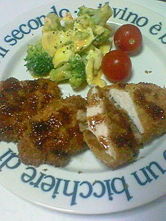 節約頑張っているので、自炊してます。今日はコストコで買ったさくらどり胸肉を使って、チキンカツを作りました。レシピはここを参考にしました。みなさんのつくれぽどうりの柔らかジューシーさでチョーおススメです。また作ろう♪
