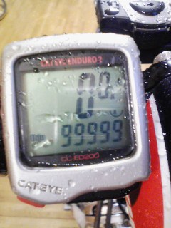 昨日の練習後のメーターの積算距離は99999km(本当なら昨日の練習中に10万km突破の予定だったのですが、昨日が雨だったので短めに切り上げ、練習後半はこの距離にあわせようとしていました)今日の練習で、また0kmから距離を刻みはじめました。コルナゴCT1を購入したときから使い続けているので10年近くになるでしょうか?これ以外のメーターも使っているので、実際の距離はもっと乗っていますが、このメーターはかなり気に入っています。距離1はその日の距離、2は週間距離として使用。あとは最高速、平均時速、時間くらいしか機能は付いていませんが、特にレースの時などは逆に操作がわずらわしくなくていいと思うくらい。今乗れる状態にある四台(コルナゴCT1、ダモクレス、VXRS、KING3)とも、このメーター用の台座をそれぞれに取り付けていて、乗るときにこのメーターをつけかえています。人気blogランキング「自転車カテゴリー」へ本日の練習朝練2時間60kmダモクレス昨日は、強度は低く、少し重めのギヤを使ったので、今日は脚を回すことも意識して、ある程度の強度で心肺に負荷をかける。メディオ軽めのインターバル(40km程度での巡行)REP40~50秒、休み70~80秒×6回短い坂を入れたコースを3~4周それまでに脚に負担がかかっていたのか、登りの感覚がいまいち。左の腸脛から腰が少し気になるので、先ほどS‐Works Roadシューズの左クリート位置をトーアウトに調整。(大した強度ではないのですが)朝に負荷をかける練習をすると、その後に歩いたり階段の昇り下りをしたりで、夜に疲れがきます。特にハム四頭筋の状態に気を付けないと。左右の腸脛靭帯をアイシング