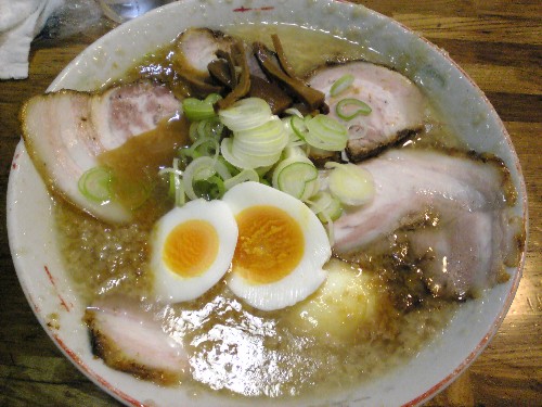 見た目・・・そのまま・・・油ギトギトラーメンです!この店は板橋区の常盤台に、あるのですが・・・元の店は、あの伝説の!?【環七 土佐っ子】店が開店するやいなや・・・環七に渋滞を引き起こし・・・幾度となく!?警察沙汰に・・・そんな店も時代の流れというよりは・・・人気店ゆえの!?いろいろな事情で、ついに閉店に・・・味が変わって最悪でしたからネェ~・・・常盤台に移ったこの『下頭橋ラーメン』は、昔の味を復活するべく!?店主が奮闘中?!との情報をネットでゲットし試しに行って見ることに~!まぁ~・・・食べた感想は・・・なるほど・・・遠い記憶の中にあったあの!?ラーメンチョッと・・・大分!?癖がなくなったというか・・・一般向け!?に成ったと言うか・・・【環七 土佐っ子】は強烈でしたからネェ~・・・何味とか・・・美味いとか・・・そういうラーメンではなく・・・このラーメンが好きか!?嫌いか!?っていう感じ・・・『下頭橋ラーメン』もそのニュアンスは、漂っているのか・・・なぁ~!?高旨血症を患ったことのある僕には・・・もう・・・スープを飲み干すことは、かないませんでしたが・・・結構・・・良い感じでしたネェ~♪(●^o^●)
