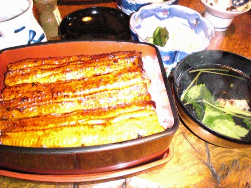 鰻重 - 『うなしげ』と読みます!お墓参りで行った埼玉県越谷市にある鰻店!一通り・・・お墓参りを済ませ・・・お昼チョッと前に立ち寄りました!前もって・・・【食べログ】で・・・越谷で評判の鰻屋をピックアップ~♪見事ヒットした、こちらのお店で食事することに~!どうですかぁ~!?こちらの鰻重・・・チョッと・・・フラッシュの光で見辛いですが・・・[爆]美味しそうでしょう~♪身がふっくらしていて・・・甘くって・・・やわらかくって・・・随分と・・・大きい鰻だったんですが・・・決して大味ではなく、鰻の油も、しつこくなく・・・家族にも大評判でしたヨゥ~!しかし・・・こんな美味しい鰻を食べてしまって・・・大丈夫かなぁ~・・・他の店で食べるのが・・・心配っす!(ーー;)
