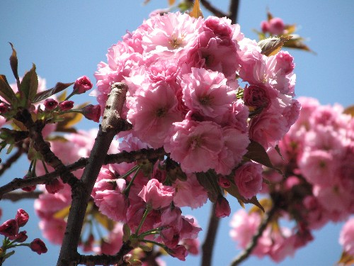 昨日・・・一昨日の暖かさで・・・一気に7~8分咲きと成ったうちの八重桜です。。。満開となるには・・・暖かい日が続けば・・・今日のように・・・涼しくなってしまうと・・・伸びてしまうかなぁ~!?(笑)桜もいいけど・・・八重桜もねぇ~♪(^^ゞ