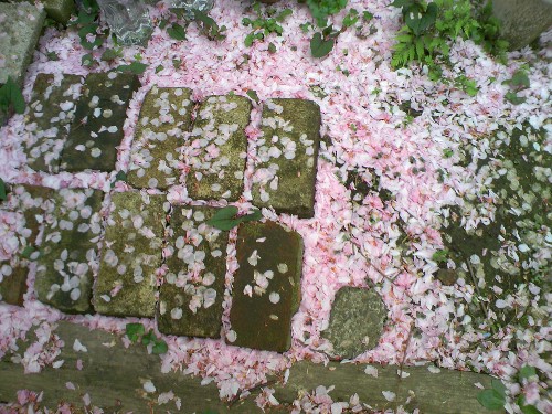 昨日の雨で落とされたのか・・・地面に桜の花びらが・・・いよいよ・・・うちの八重桜も・・・そのうち・・・地面が見えなくなるほど・・・花びらに埋め尽くされるでしょう・・・季節は巡る・・・(^_^;)2011年04月17日撮影