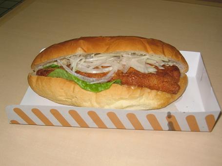 お正月に主人の実家へ行った時、北陸自動車道の米山サービスエリア(上)で見つけたサバサンド。パンの大きさは20cmほど。サバのフライが入っていて、スライス玉葱は好きなだけつめ放題!これで350円だったかな?サバも大きく、青臭さも無く子供たちもペロリ!パンも雑穀が入っているようで香ばしくパンだけでも十分美味しい!鯖は素揚げならするけどパン粉付けるフライは初めてでした!米山の近くにはトルコ文化村というテーマパークがあり、そのトルコの食べ方を取り入れた一品のようです。そういえばサバカレーとか、粘りのあるトルコアイス、一時期流行したな~