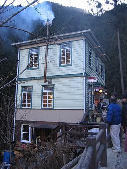 昨日、桧原(ひのはら)村にある払沢の滝(ほっさわのたき)へ行ってみました。新聞に載ってたんですよ・・寒さで滝が凍結してるって・・・行ってみたら人の多さにびっくり~2人ほどご近所さんにも会いました!自宅からは車で1時間以上かかるのに・・・それほど話題ってこと?少し道を歩くと石造りのしゃれた喫茶店や山小屋風のお食事処があり・・・その先には郵便局?村役場の向いに建っていた昭和4年築の郵便局を移築した木工のお土産やさんでした。左端のおじ様が覗いている双眼鏡の先には天狗滝が見えます。肉眼でみるとこんな風景でしかないけど↓・・ながーい滝が見えました。さらに山道を歩いていくと・・見えてきました払沢の滝!すごーい凍ってる~!!表面が凍っていてこの奥には滝が流れていて不思議な感じでしたよ。帰りにかった豆腐屋さんのおからドーナッツ♪作りたてのおからから出来ていてしっとりふんわり~ 完全凍結はめずらしいみたいですね。お近くの方!是非行ってみてください。