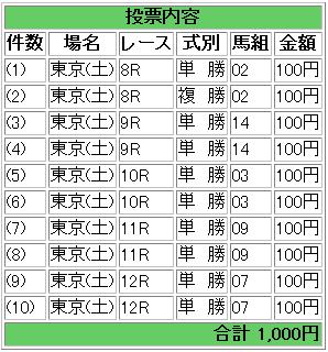 さて、馬券道場も後半戦の折り返し。今日までの払い戻し額は、520円という失態。厳しい。これほど、狙った馬が来ないのもつらい。残り必要額は、7480円。4日間で7480円の獲得ということは、平均して、1875円/1日。うーん、あきらめずに狙い続けるとしよう。