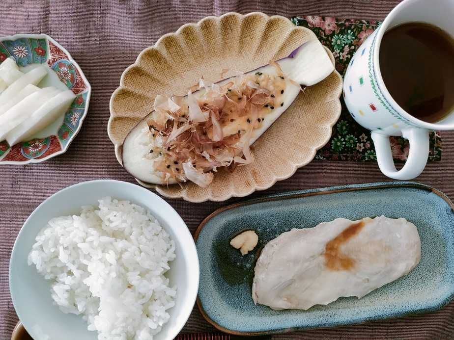 こんにちは~^^今日は一日曇りのようです。本日総理大臣の指名です。今テレビでLIVE観ています^^今日のお昼もはい!よしりんの四毒抜き食事です。今日はお肉が食べたいな 昨夜はお刺身だったので自分の欲で。。。ほんとはね。。欲はよくないようです。今日も鶏さんです。今日はむね肉を薄切りにして蒸しました。しょうがと酢醤油でいただきました。茄子の蒸し焼き少しの水でね^^味噌とゴマを合わせました。かつお節をかけて~美味でございました~ぬか漬け 今回は大根です^^ほっかほかのごはん~今日も完食。ご馳走様でした~日々感謝<m(__)m>