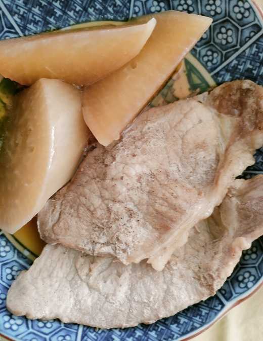 こんにちは^^今日は気持ちよく晴れています。晴れはやはりいい気持ちです^^今日は衣服の入れ替えをしました。多すぎな衣服。。。どう整理するべきか!!!一生の課題のように思われてなりません((+_+))今日のお昼もよしりんの四毒抜き食事に挑戦です。今日のお昼は昨夜スペアリブを煮込みましたがその液が勿体ないなぁ~~~なんて思っちゃいましてお!そうだ!大根買って来たよね^^なんて思いを巡らせお昼には合体させてみました。スペアリブはもう無かったので新たに豚肉投入~~ぬか漬けの大根冷ややっこごはんとなりました。今日も完食です^^毎日感謝<m(__)m>