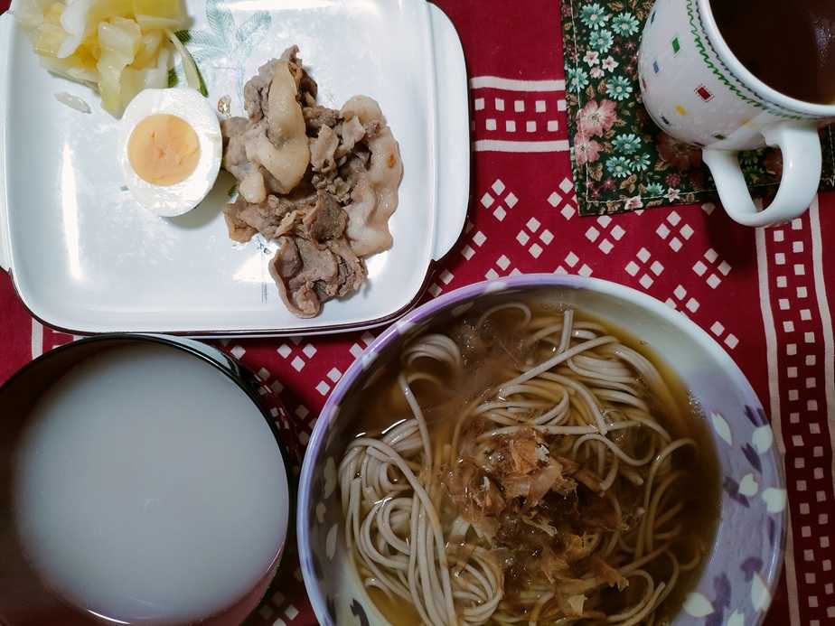 こんにちは~^^うっとおしい雨になっています。私の足は家に根っこ付いています(*´▽`*)今日のお昼もよしりんの四毒抜きの食事に挑戦です^^四毒って?只今 アマゾン・楽天さんで本が売られています。小麦 甘いもの 乳製品 植物油今日はね、十割蕎麦豚肉の生姜焼きゆで卵きゃべつのぬかづけそして蕎麦湯となっています。蕎麦湯 美味しいです^^この中に入っている物ルチン!!!蕎麦のルチンは、毛細血管を強化して血流を改善し、高血圧や脳卒中などの予防に役立つ栄養成分。強力な抗酸化作用もあり、生活習慣病の予防や老化防止にも効果が期待できる。水溶性のため、蕎麦を茹でた際のゆで湯を飲むことで、ルチンを効率的に摂取できるとあります。今日の十割蕎麦はこちらです。塩なし^^蕎麦湯も最高に美味しいです。今日も感謝^^ごちそうさまでした<m(__)m>