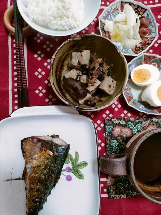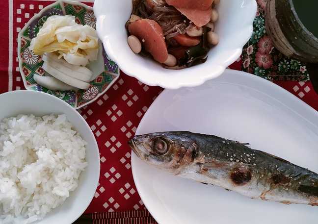 こんにちは^^今日は気持ちよく晴れています。午前中はガス器具の点検がありました。日頃の台所のお片付け ちょこっとやりました^^;ガス器具 10年保証ですが我が家はそれ以上になっています。引っ越ししてきてそれからの器具ですのでもう15年かぁ・・・(';')まぁ お風呂の表示は日にちが表示されなくなっているけれど温度はばっちりなのでそのまま使っていますが10年交換なのでしょうね・・・(ノД`)・゜・。この時にも 時間や日の過ぎるのが早い!!!と思うばかりです。もっとゆっくり~~~でいいんだけれどね^^今日のお昼もよしりんの四毒抜き食事に挑戦です^^今日はねアジの塩焼き体長30cmと結構大きいものでした。半身食べられたらいいかな~なんて思っていましたが1匹すべていただきました~~~^^自分でもびっくり~^^糸こんにゃく 人参 大豆 豚肉の煮ものかつお節と昆布で出汁し 醤油味となっています。ぬか漬けのキャベツと大根ごはんとなりました。今日もお腹いっぱい~ごちそうさまでした<m(__)m>