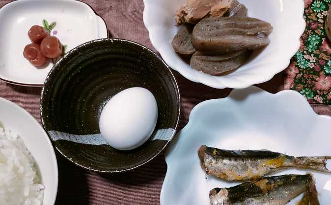 こんにちは^^今日のお昼も少しズレています^^;なんでか?(ノД`)・゜・。今日は昨日作ったイワシの圧力鍋煮^^そして蒟蒻 鶏肉との煮物 ゆで卵梅干し ほっかほかのごはん^^今日も完食です^^ごちそうさまでした<m(__)m>