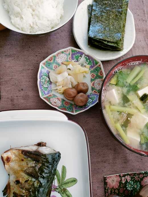 自家製の梅干しとぬか漬けのキャベツ 焼き海苔