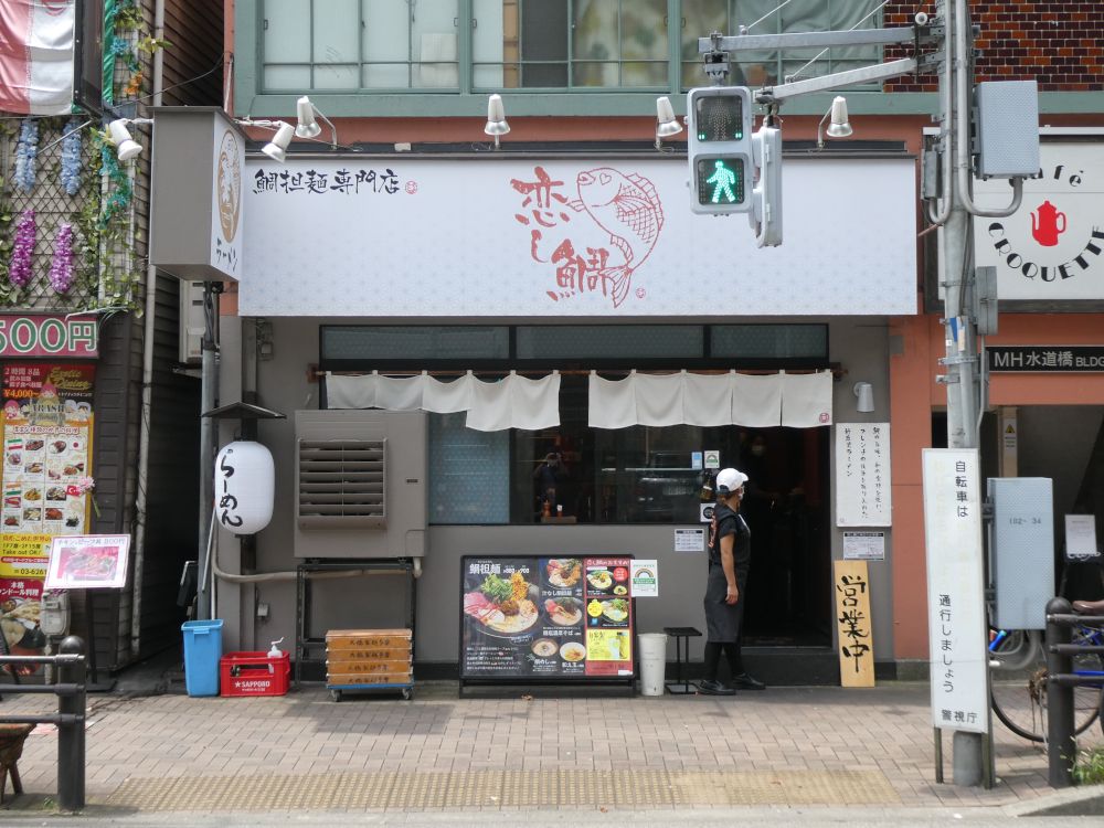 山の日だが、祝日出勤。今週からはお盆だが、おそらく日曜日を除き出勤するかもしれぬ。なぜなら武漢ウィルスとやら、新型コロナウィルスとやらの感染拡大で増えた仕事だけではなく、通常の仕事と増えた仕事の後始末もしなくてはならないからだ。実際にすでに遅れてしまった作業もあるが…。 その前にブランチを食おう。神保町を降り、白山通りに沿って少し歩いたら、「恋し鯛」に到着。大阪で店を開いたフレンチ出身の方の監修によるお店だ。祝日なのに、ランチセットは通常にやっているね。というわけで、鯛めし付けの汁なし鯛担麺のランチセットの食券を購入し、無料で最も辛い3辛をお願いした。 10分も待たずにご対麺。意外と提供が早い。 けっこう豪勢そうだね。しかもトッピングの載せ方は綺麗だ。かき混ぜれば惜しいって感じもするが、汁なしだからかき混ぜないとダメだね。 少し平な中太麺は重さがあり、もっちりして、汁なしの麺としてレベルが高いのだ。タレはゴマが濃いめで、カラシビに慣れてきたわしにとって普通の辛さと痺れとのバランスもよいが、鯛の味がよくわからない。やはり汁ありのほうがよかったかな。しかし、今日みたいに35度を超えた天気ならやはり汁なしかな。 次は温玉の登場。 温玉でさらにかき混ぜたら、やはり辛さと痺れがさらに弱まったと味わえた。 そして鯛めし。炊き込みご飯はタレと鯛の旨味の相性がよい。これはうまい。鯛の切り身も載せてあり、旨味もしっかりしている。 それから鯛めし用の出汁の登場。どのように食べたほうが良いかちょっと悩んだ。とりあえず少し飯に注いだ。出汁とメシの相性が良いが…。 やはり残りのタレにかけてしまった。鯛めしとタレ、出汁が一体化してきたね。 おいしかった。これじゃ汁ありも食べに来なくてはならない。しかもランチタイムのセットは値段とボリュームもよい。ところで店は武漢ウィルスとやら、新型コロナウィルスとやらに負けて閉店した麺一筋の跡地にできたとは悲しい話でもあるけど。ご馳走様。 向かいのあす花はもうすぐ閉店。しかし、武漢ウィルスとやら、新型コロナウィルスとやらのせいではなく、お産だね。いい店が消えたが、いい話だ。お幸せに。