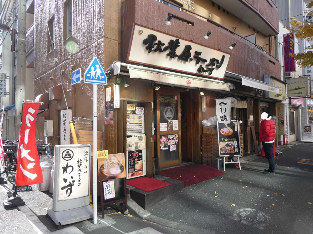 武漢ウィルスとやら、新型コロナウィルスとやらの感染拡大による新しい生活様式で、疲れがかなり溜まってしまったようだ。もうすぐ年末だが、やはりこのまま仕事体制で令和3年に突入しそうだ。 あまり平日のブランチにニンニクを取ろうとしていなかったが、もはやしょうがないかな。半年以上ぶりの「秋葉原ラーメン わいず」の前に来た。そういえば、ランチタイムの訪問は2回目だ。食券機を見たらメニューの構成が変わったようだ。久しぶりだから仕方ないかな。神田わいずで提供しており、秋葉原店で提供していなかった台湾まぜそばの提供も始まった。ラーメン、半熟玉子、チャーシューの食券を購入してから入店。ほうれん草のみのトッピング注文ができないとわかったが仕方ない。カタメ、コイメをお願いした。 カタメだから提供が早い。王道家と一緒にイベントをやったし、王道家の清水店主も技術提供と言っていたため、早速味の変化をチェック。豚骨醤油スープは出汁が濃厚で、タレも効いているというところが相変わらずハイレベルだ。縮れ中太麺は絡めもよいしコシもあり、スープとの相性が良い。やはりチャーシューは直火焼燻製チャーシューになったため、味付けも濃くなったし、香ばしくなった。やはりニンニクを大量に入れてしまった。 おいしかったね。ほうれん草の増量ができず残念だが、チャーシューがおいしくなった。ここに来たらチャーシューメンを食わなくてはならなくなった。本店の味もチェックしなくてはならないね。ご馳走様。