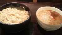 半肉塩つけ大盛(430g)、半熟玉子を注文した。浅草開化楼による極太麺はさすがだ。つるつるしているし、コシもある。鶏と魚介によるつけ汁のコクもかなりある。気のせいかもしれぬが、魚粉による味が弱くして、魚介スープで勝負することになったような気がする。最初から魚粉で味を濃くしたスープを食べたのも、浅草開化楼の麺を扱った 六厘舎 、スープをリニューアルする前の「つけめん TETSU」だ。その後にも、「中華蕎麦 とみ田」のような凄い店と出会った。しかし、印象が残るのも、とみ田と六厘舎だけであろう。やはりわし的に、魚粉ではなく、魚介スープ自体で勝負する店がいいと思う。