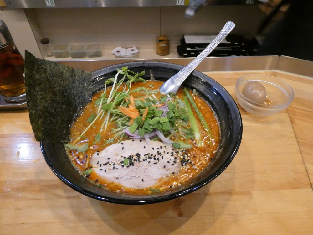 ​ 二日連続の訪問 ​となるが、体調管理をしっかりしたい時、あるいは困った時なら「​ 東京担々麺本舗 瀬佐味亭 ​」だね。生姜担担麺のスーパーホット)を注文し、クーポンでほかほか煮込み茶玉子をお願いした。