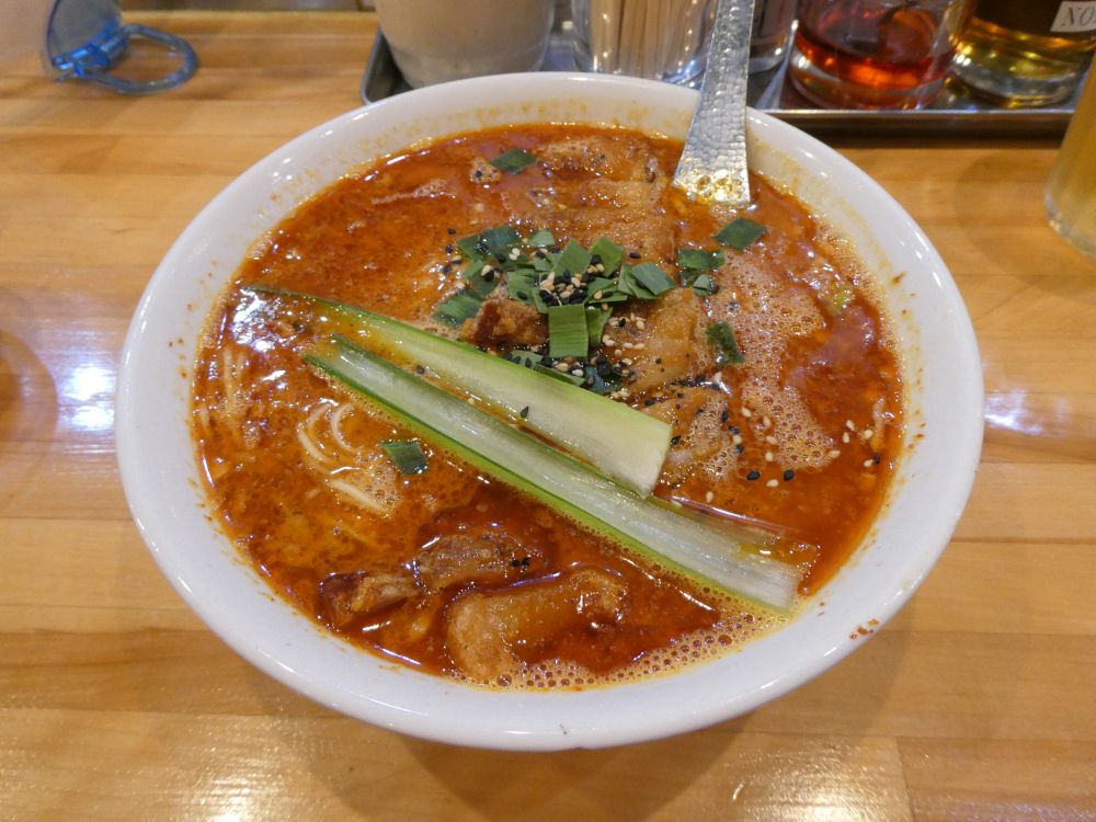レギュラーの担担麺は​ 1ヵ月ぐらいぶり ​だが、やはり悩んだ時レギュラーのメニューでいこうってこと。スーパーホットの辛さと白ゴマタレによるスープとの相性がよいと食べればすぐわかる。ストレート細麺は歯切れと絡めがよい。パーコーはやはり衣がパリパリし、肉が柔らかい食感をしている。