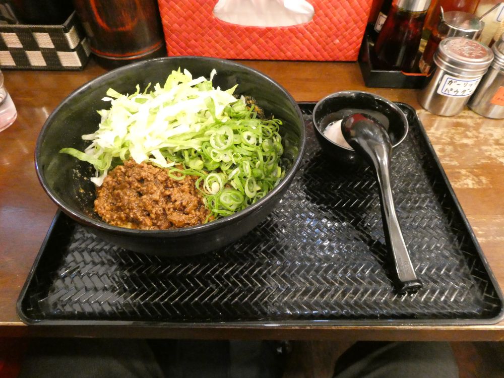 このタイミングなら、やはり「​ 広島式 汁なし担担麺 湯島ひよこ堂 ​」だね。一時11時頃から営業を始めることもあったが、最近ほとんど11時半定刻の営業が多い。というわけで、すでに​ 1ヵ月ぐらいぶり ​だった。汁なし担担麺 (麺140g)セット(汁なし担々麺・温泉卵・白飯)の食券を購入し、店主に4辛をお願いした。