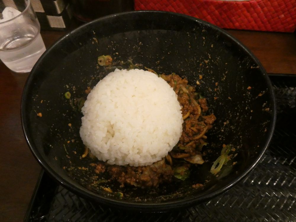 そしてライスを頼んだ。減量中なのでやはり並盛。最近少な目で食べるのではないかと店主に言われたが、まさにその通りだ。かき混ぜてからやはり山椒、ガーリックパウダー、ラー油をさらに投入。