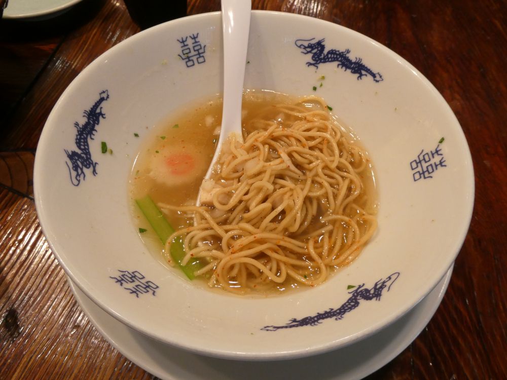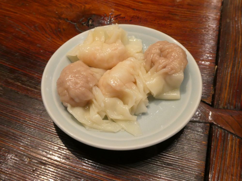 微妙だが肉ワンタンは海老ワンタンより皮が厚いような気がする。それにしても、海老と肉の餡はいずれも大きいね。